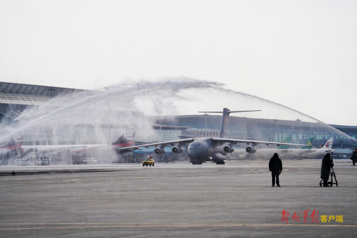 运-20专机通过“水门”。中国军网记者刘丹摄