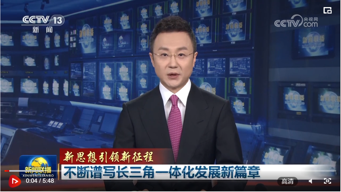 央视网消息(新闻联播):长三角是长江经济带和“一带一路”的重要交汇点,在国家现代化建设大局和全方位开放格局中具有举足轻重的战略地位。党的十八大以来,习近平总书记亲自谋划、亲自部署、亲自推动长三角一体化发展重大国家战略。沪苏浙皖三省一市以总书记擘画的发展蓝图为根本遵循,紧扣“全国发展强劲活跃增长极、高质量发展样板区、率先基本实现现代化引领区、区域一体化发展示范区、改革开放新高地”的战略定位,牢牢把握高质量发展这个首要任务,奋力书写中国式现代化的长三角新篇章。
