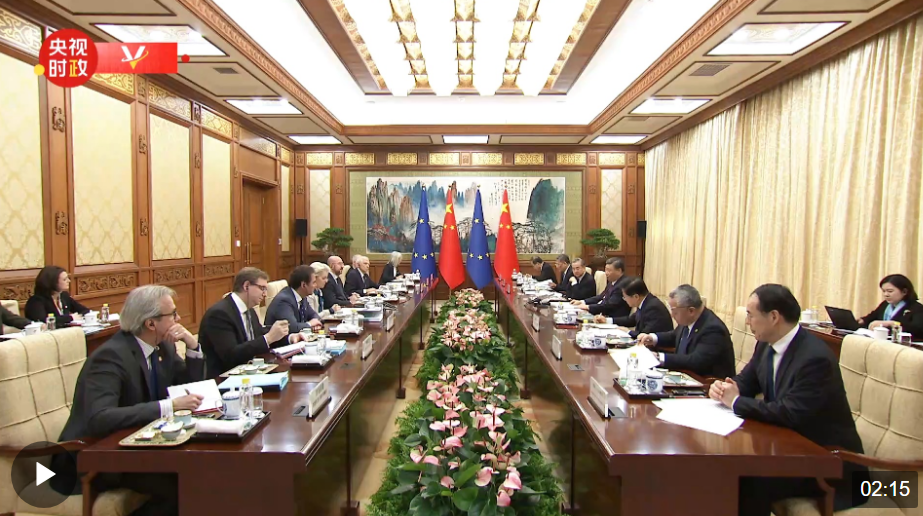 欧洲理事会主席米歇尔说:“我们很高兴与您见面,我们共同致力于与中国发展稳定互利的关系。欧盟和中国是重要的贸易伙伴,我们希望建立可持续、平衡且公平的贸易关系,为我们的人民带来更大的繁荣。我们坚持奉行一个中国政策。”