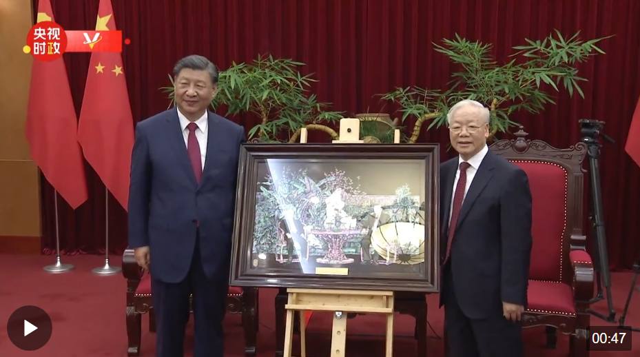 当地时间12月12日下午,刚刚抵达河内的中共中央总书记、国家主席习近平在越共中央驻地同越共中央总书记阮富仲举行会谈。会谈后,阮富仲邀请习近平进行小范围茶叙。两党总书记在轻松友好的氛围中继续进行深入沟通。KTe安康新闻网