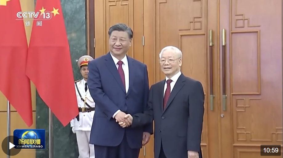 去年10月,阮富仲率领越方领导人作为中共二十大后第一个元首级代表团访华。两党总书记相约在河内见面。此次习近平如约而至,完成第三轮互访。