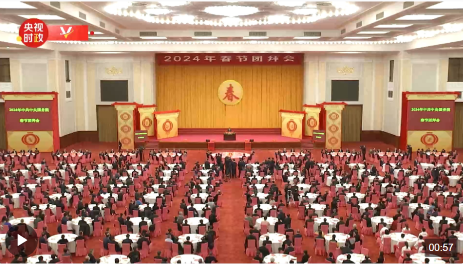 中共中央、国务院8日上午在人民大会堂举行2024年春节团拜会。中共中央总书记、国家主席、中央军委主席习近平发表讲话,代表党中央和国务院,向全国各族人民,向香港特别行政区同胞、澳门特别行政区同胞、台湾同胞和海外侨胞拜年。jf3安康新闻网