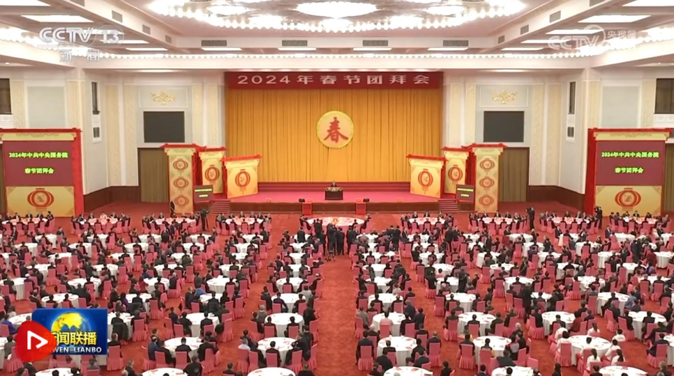 龙腾九州喜迎佳节,春满四海共话丰年。在农历甲辰龙年即将到来之际,2月8日,中共中央、国务院举行2024年春节团拜会。习近平总书记发表重要讲话,向全国各族人民和港澳台同胞、海外侨胞致以美好的新春祝福,鼓舞全国人民“振奋龙马精神,以龙腾虎跃、鱼跃龙门的干劲闯劲,开拓创新、拼搏奉献,共同书写中国式现代化建设新篇章”。