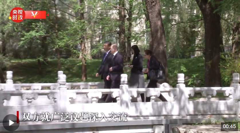 独家视频丨习近平主席同德国总理朔尔茨散步交谈