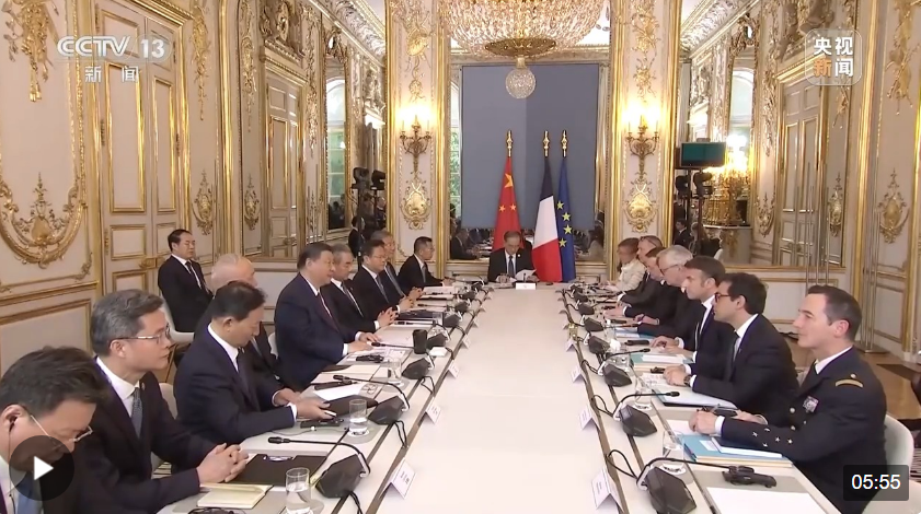 当地时间5月6日下午,国家主席习近平在巴黎爱丽舍宫同法国总统马克龙举行会谈。