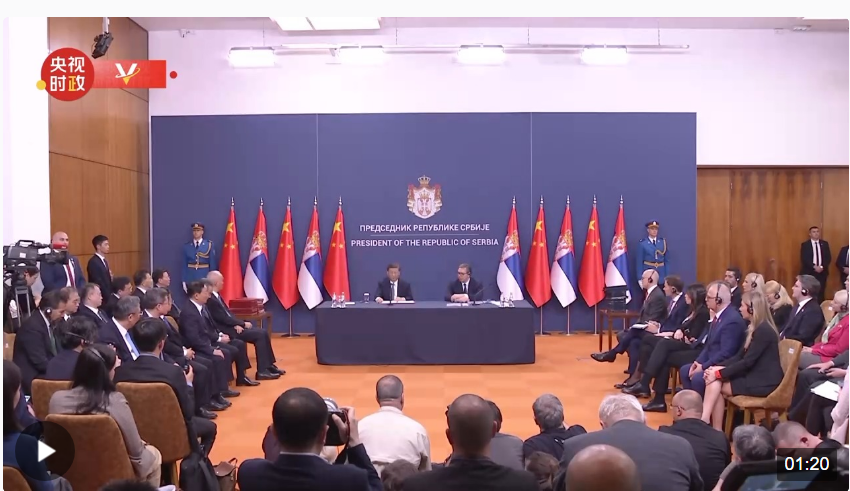 当地时间5月8日中午,国家主席习近平在贝尔格莱德塞尔维亚大厦同塞尔维亚总统武契奇会谈后共同会见记者。Wbk安康新闻网