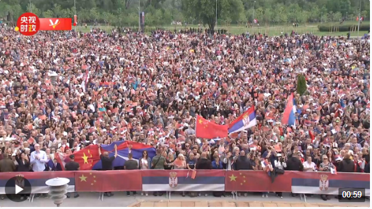 当天的欢迎仪式结束后,武契奇总统陪同习主席来到政府大厦平台。大厦广场上,一万五千名塞尔维亚民众挥舞中塞两国国旗,对习主席表示最热烈的欢迎。