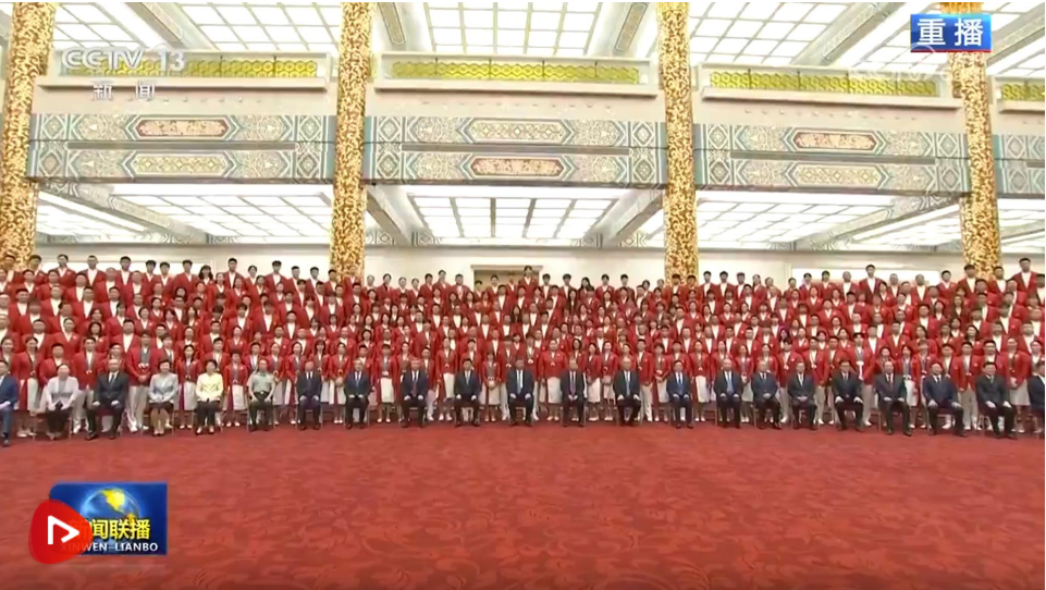 习近平指出,中国体育代表团的优异成绩,将中华体育精神和奥林匹克精神发扬光大,让中华民族精神和时代精神交相辉映,生动诠释了新时代中国精神。赛场上,大家牢记党和人民重托,“国家荣誉永远超过个人”、“我的这块金牌献给伟大的祖国”等誓言掷地有声,展现了祖国至上、为国争光的赤子情怀,展现了顽强拼搏、自强不息的必胜信念,展现了团结协作、并肩作战的宝贵品质,展现了中国青年一代自信乐观、热情友好的阳光气质。你们让全世界看到了中华优秀传统文化的深厚积淀,看到了中国开放包容、昂扬进取的时代风貌,看到了中国人民的志气、锐气和底气。祖国和人民为你们骄傲,为你们点赞。