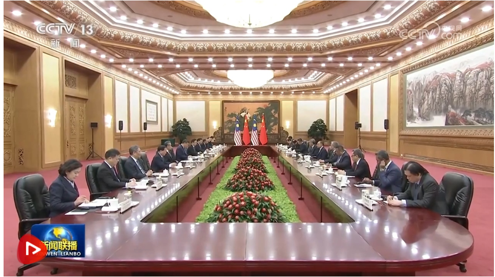 11月7日下午,国家主席习近平在北京人民大会堂会见来华访问的马来西亚总理安瓦尔。