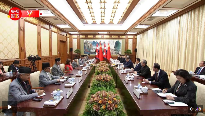 奥利说:“尊敬的习主席,我很高兴今天同您会见。我们两国之间只有友谊,没有问题。我们的合作关系水平像喜马拉雅山一样高。中国取得了举世瞩目的成就,对此我们深受鼓舞,这是在中国共产党领导下,特别是在您卓越的领导下取得的。主席先生您是我们这个时代具有远见、富有活力的领导人,也是尼泊尔的真正朋友。”