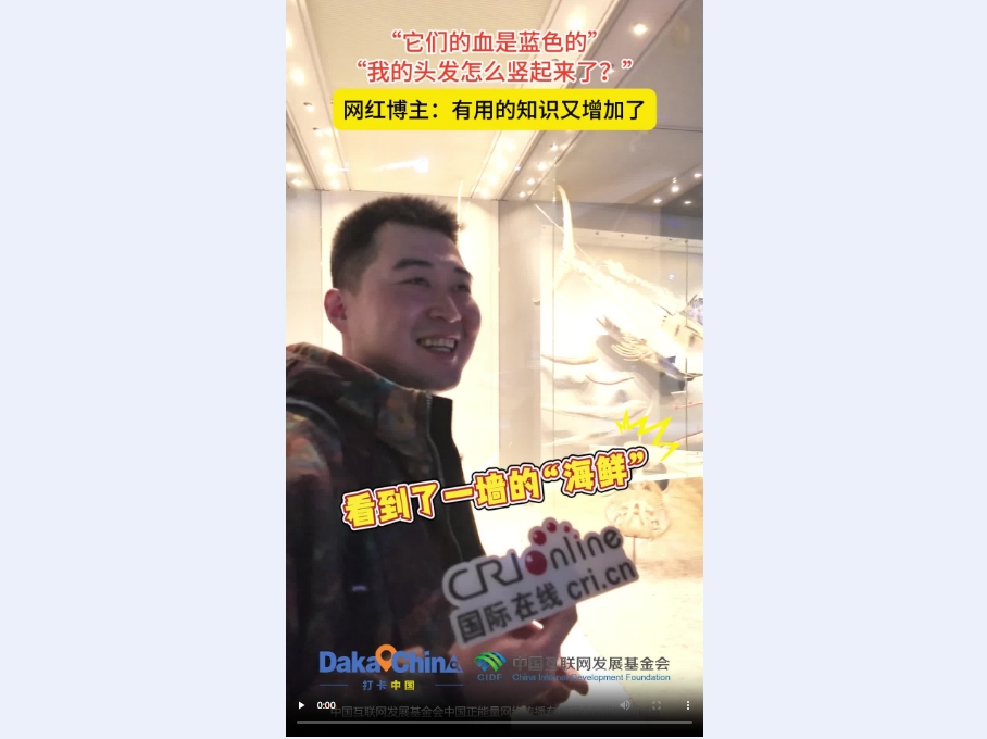 “它们的血是蓝色的”“我的头发怎么竖起来了?”12月21日,参加2024“打卡中国·古韵潮音——你好,京津冀!”网络国际传播活动的网红博主们打卡天津滨海新区文化中心、天津国家海洋博物馆,开启了涨知识的一天。滨海新区文化中心由滨海图书馆、滨海美术馆、滨海科技馆、滨海演艺中心、市民活动中心以及文化长廊等“三馆两中心一长廊”组成,是一座“文化+”复合型文化综合体。国家海洋博物馆则是一座集收藏、展示、研究、教育于一体的国家级综合性海洋博物馆,也是天津的热门旅游打卡地。