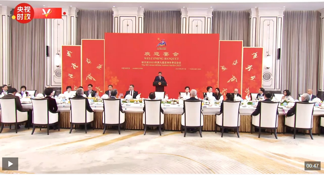 2月7日中午,国家主席习近平和夫人彭丽媛在黑龙江省哈尔滨市太阳岛宾馆举行宴会,欢迎来华出席哈尔滨第九届亚洲冬季运动会开幕式的国际贵宾。Zfw安康新闻网
