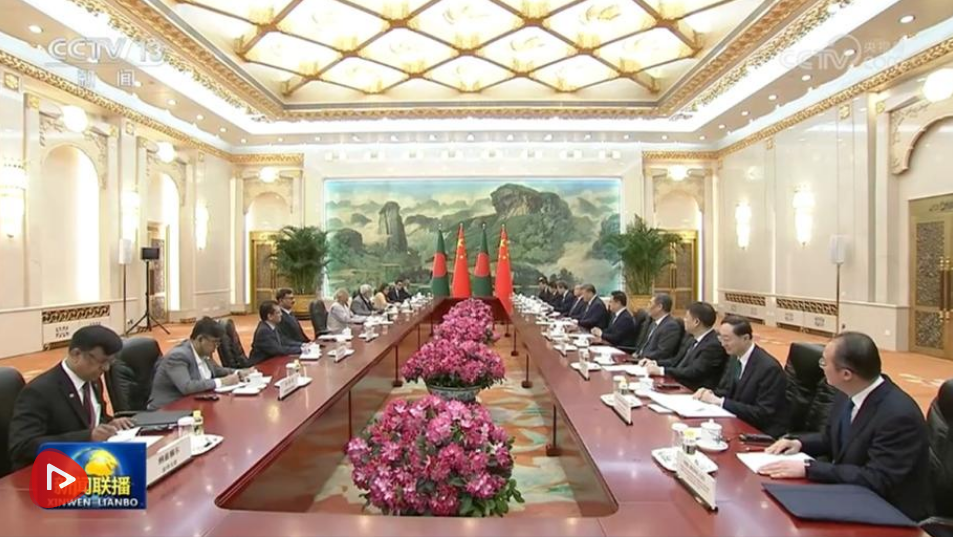 习近平指出,中孟人民友好交往源远流长,古老的丝绸之路把两国紧密联系在一起。建交以来,双方始终相互支持、平等相待、合作共赢。中国对孟加拉国的睦邻友好政策保持高度稳定性和延续性,坚定奉行面向全体孟加拉国人民的睦邻友好政策,坚持同孟方做彼此信赖的好邻居、好朋友、好伙伴。今年是中孟建交50周年和中孟人文交流年。中方愿同孟方一道努力,推动中孟合作不断迈上新台阶,更好造福两国人民。