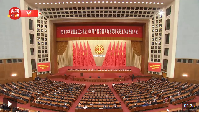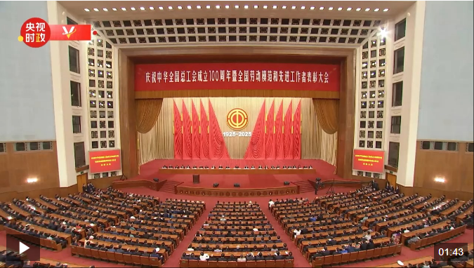 △视频:庆祝中华全国总工会成立100周年暨全国劳动模范和先进工作者表彰大会隆重举行