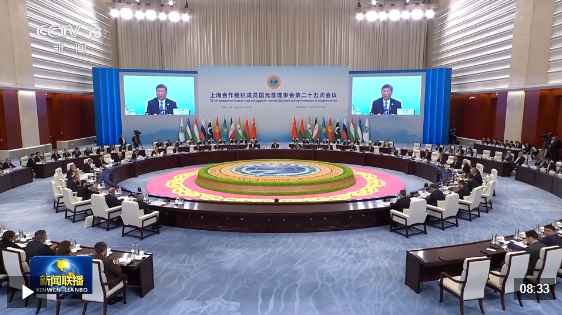 △上海合作组织2024—2025年轮值主席国徽标。(总台央视记者范一鸣拍摄)