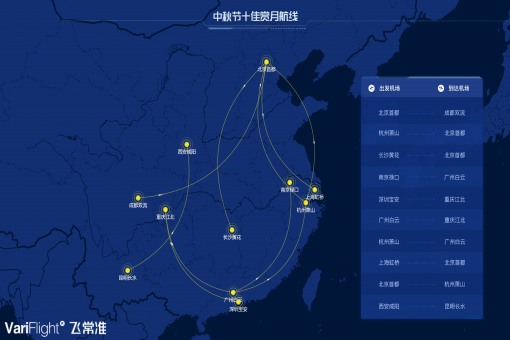 中秋节航班量预计约3.95万,十佳赏月航线北京占5席