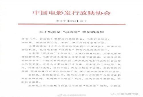 电影市场一直饱受诟病的电影票“不退不改”“只改不退”等现象终于有人来管了,中国电影发行放映协会18日发布《关于电影票“退改签”规定的通知》,要求电影票“……