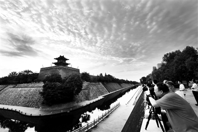 市民在东南城角拍摄夕阳 记者 马昭 摄