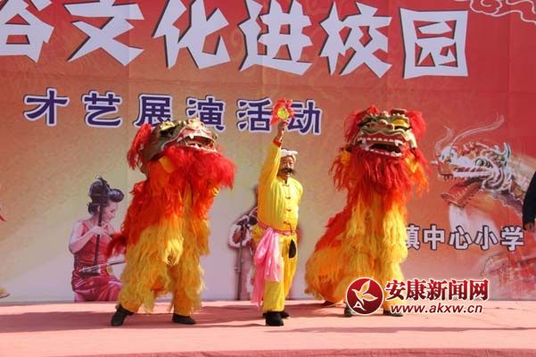 传统地方节目《舞彩狮》隆重登场。两只彩狮随着锣鼓声节拍做出各种不同调皮可爱的动作。丰富多彩的地方表演戏,集说、唱、舞为一体,幽默诙谐的语言,歌声或高昂或婉转动听,歌颂国家惠民政策、老百姓红红火火的日子。乐器合奏,鼓声咚咚,锣声呛呛,笛声悠悠,配合默契,展示出不同乐器的独特魅力。汉调二簧皮影戏,不同造型的皮影木偶,艺人们娴熟精湛的演技,更是让孩子们看的目不转睛。民间绝活表演让师生大开眼界,深切感受到中华民俗文化独特的艺术魅力。