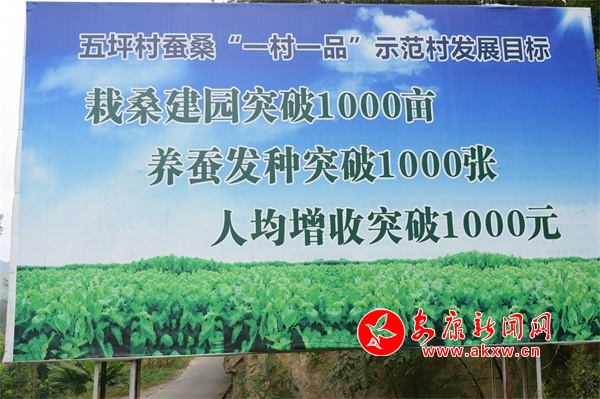 潮起潮落话蚕桑,五坪村通过一系列新的养蚕技术,并与农民建立合作共赢的利益链接机制,蚕桑产业大有重振雄风之势,举全村和帮扶部门之力,围绕“生产基地化、发展规模化、依靠龙头和科技带动,产、供、销一体化经营”的思路,把发展壮大蚕桑产业作为富民强村的主导产业来抓,掀起了蚕桑产业发展新高潮。