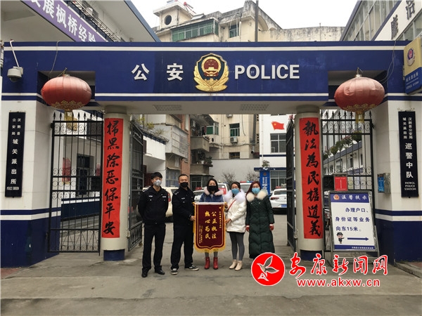 本网讯(通讯员 熊贺成 刘安正)2月26日上午,在汉阴县某电子公司务工的员工代表来到汉阴县公安局城关派出所,将一面印有“公正执法、热心为民”的锦旗送到城关派出所民警手中,感谢为他们67名员工追回被拖欠的工资。