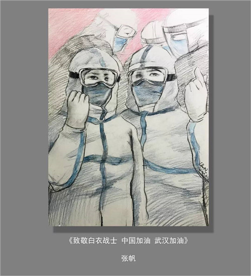 据了解,各学校师生在做好自身防控工作的同时,密切关注奋斗在抗疫第一线的英雄们,用自己的画笔创作出形式多样、丰富多彩的讴歌抗“疫”精神的作品,以发挥自己的一技之长,以书画宣传正确的阻断疫情的方法,普及相关知识,呼吁人们尊重自然,保护生态环境,以书画向最美“逆行者”们致敬。礼赞英雄,呼唤友爱,助力“抗疫”,致敬医护人员,致敬在前线的英雄们。