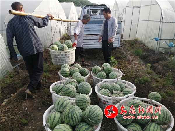 西瓜产业是龙垭蔬果产业体验园自2019年建成后,继甘蓝菜之后的又一扶贫产业。今年年初,甘蓝菜收获后,为使园区发挥最大经济效益,帮助村集体实现持续增收,村三委与帮扶单位经过反复考察,最终确定发展西瓜产业。鉴于村上第一次这样大规模种植,缺少技术和后期销售渠道,于是引进了具有多年种植西瓜经验的汉阴县金牛山合作社共同发展。龙垭惠民蔬果合作社出土地、日光温室大棚,汉阴县金牛山合作社出管理、技术,达成了风险共担利益共享的合作协议,西瓜项目顺利实施。