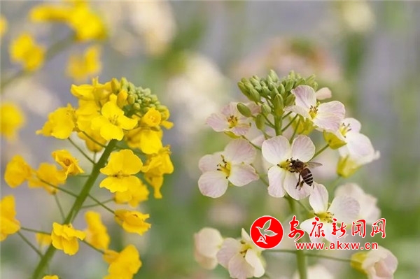 本网讯(通讯员 陈芸 赵建祥)阳春布德泽,万物生光辉。沐浴着金色的阳光,“三沈故里人文汉阴”15万亩油菜花已从月河川道至凤堰梯田次第盛开。在汉阴平梁镇新河村,一片彩色的油菜花田格外引人注目。耀眼的黄金色,淡淡的粉色,纯净的白,在嫩绿的油菜叶衬托下,附和着微风,在油菜田里随风轻轻摆动。穿梭其间,身边时而一片金黄、时而一片雪白、时而一片翠绿,仿佛打翻了大自然的调色板,丰富的色彩配上汉阴晴空万里蓝天白云,怎么拍怎么漂亮。