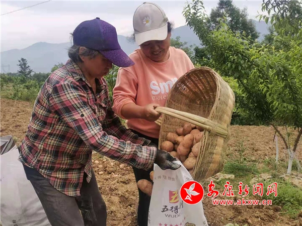 五月入夏,烈日当头,却挡不住汉阴县月河村产业园里劳作的热情:“小心锄头,别把洋芋挖烂了……大家加油啊,今天又订出去3000斤……”月河村朱朝宝用毛巾擦去头上的汗水,脸上洋溢着丰收的喜悦。近日来,月河村月兴种植农民专业合作社的社员们在抓紧收获富硒洋芋。