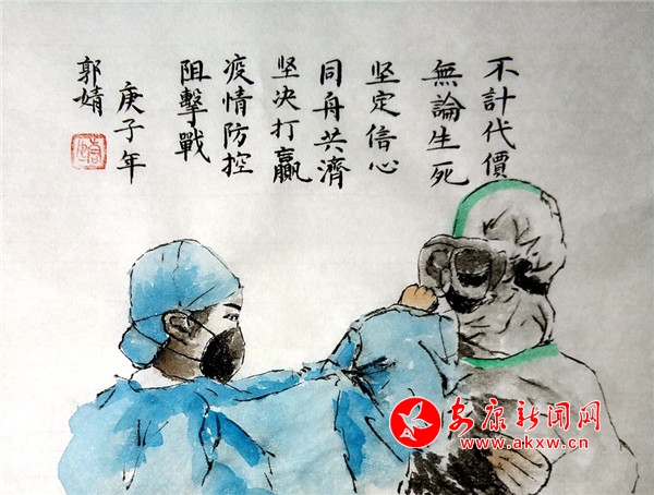 汉阴县初级中学的老师们纷纷挥毫泼墨将心中对抗疫一线工作者的牵挂绘就成一幅幅优秀的绘画及书法作品,为所有逆行的英雄礼赞,为防控疫情凝聚正能量。“举国同战……