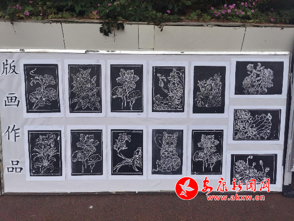 本网讯(通讯员 谢洪波)硬质纸张平铺,笔尖飞舞,勾勒涂抹,房屋、花树就栩栩如生地展现在纸上。数名学生围着辅导老师汪飞练习版画,大家神情专注,不时发问。