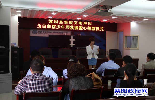5月9日上午,紫阳县11家省级文明单位在县电力局为白血病患者邓紫健同学举行了爱心捐款仪式。