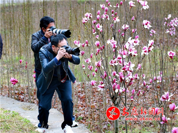 近日,平利县广佛镇八角庙村5000亩辛夷花绚丽绽放,游客纷至沓来,观赏拍照。(王韬/图文)