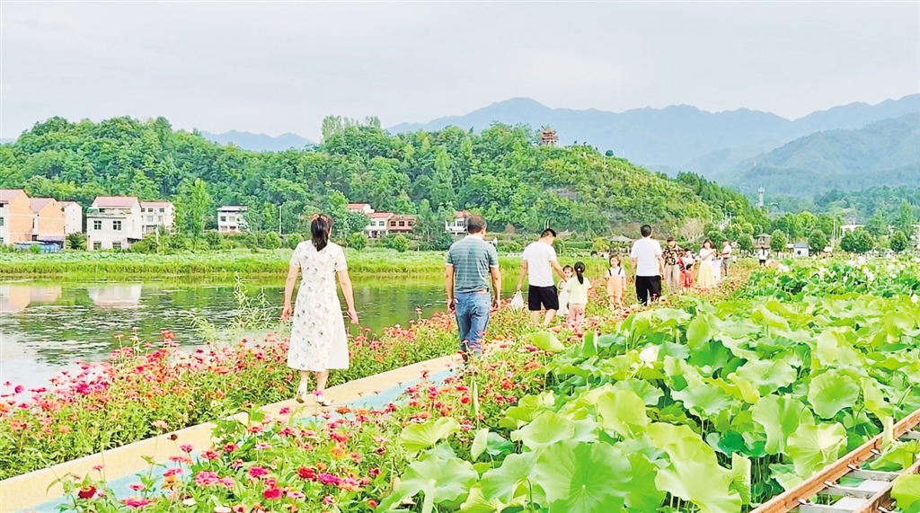 合影留念中秋节期间,平利千家坪森林公园天书峡马鞭草花竞相怒放。如画的景色吸引众多游客前来赏景打卡。(詹永桂 摄)……