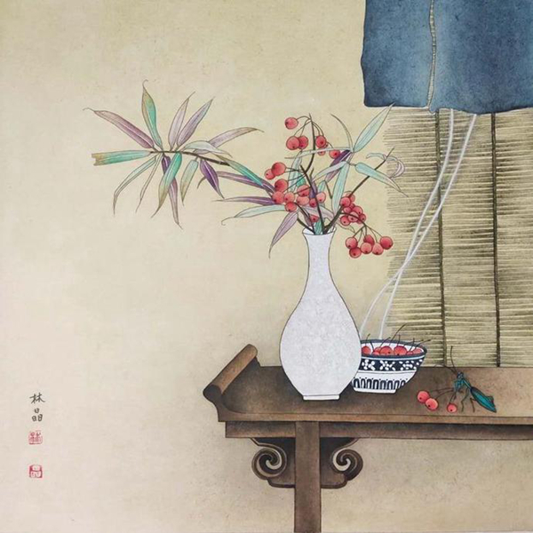 工笔花鸟画由于极其细密,既考验一个人的艺术功力,又考验一个人内在修养。浸润其中20多年,林晶“人如其画,画如其人”,画内她清秀典雅,画外她和温柔纯净。知道她、熟悉她的朋友,都说她是一位心灵娴静而细腻的人。