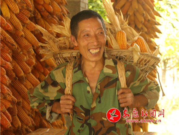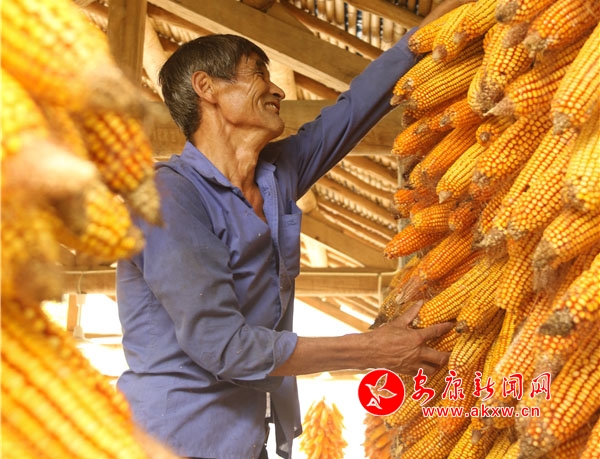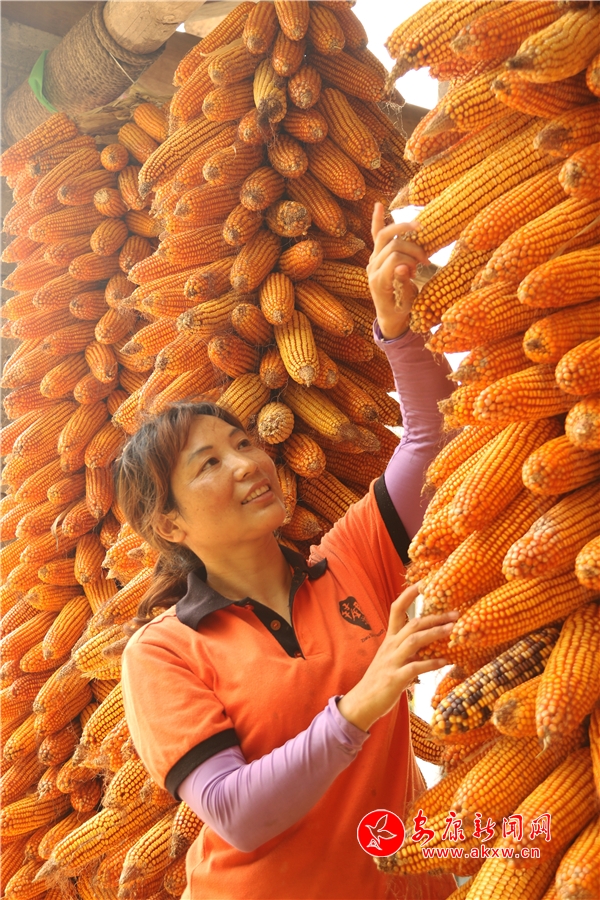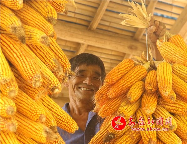 辛劳了大半年的村民,面对挂满庭院的金色玉米,掩不住内心丰收的喜悦和满意的笑容。