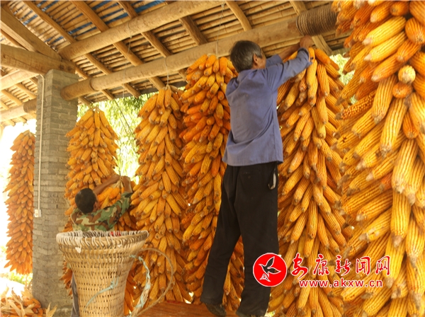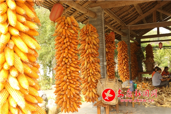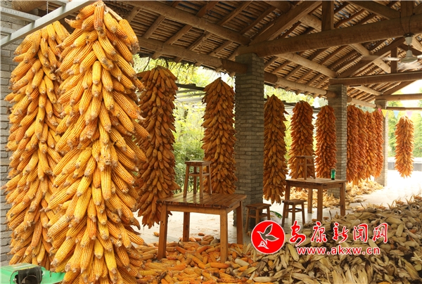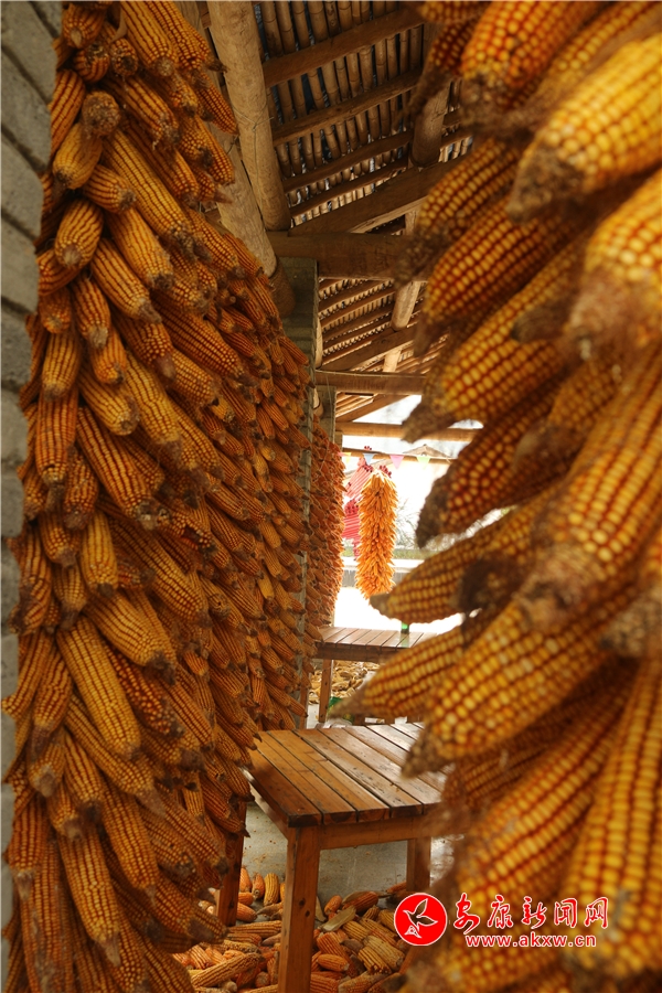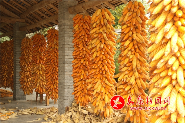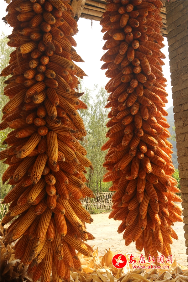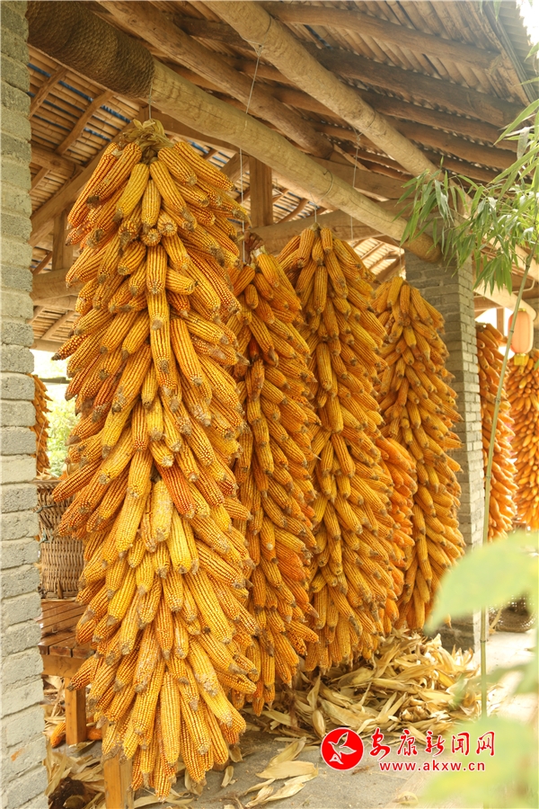 黄澄澄的玉米挂满房前屋后。记者将这一场景迅疾抓拍,成就了“金秋丰收季”又一作品。