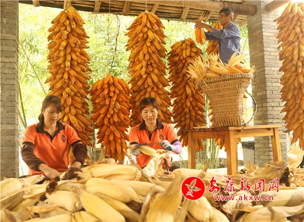 有的忙于运送,有的忙于剥穗,有的忙于上架,丰收的喜庆洋溢在每一个角落。