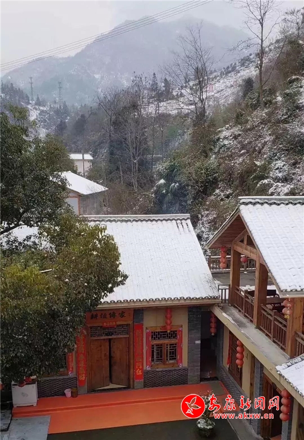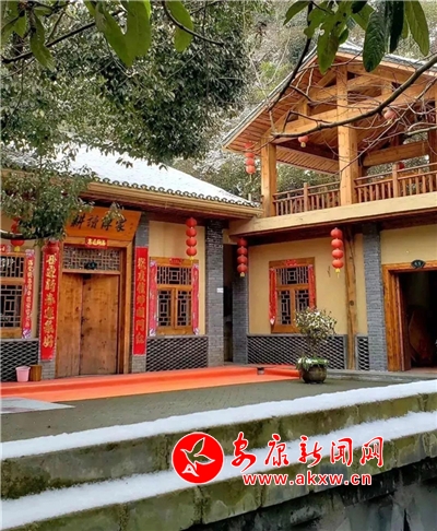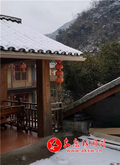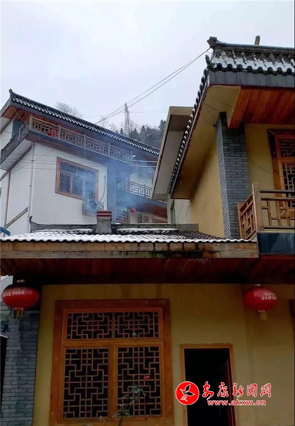 红屋檐、红格窗、红木门、红楹联、红地毯,还有那悬挂在屋顶上随风舞动的红灯笼,在瑟瑟寒风和茫茫白雪中,才显其妖娆展姿。这里,是红与白色泽、热与冷色温的汇聚。红,是一枝梅,是数盏灯,是万家火,是山里人热腾腾好日子的主色调……