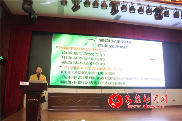 本次培训特别邀请了西安交通大学第一附属医院输血科主任王宝燕教授,她结合自身多年工作经验,就《临床输血流程管理和临床案例分析》进行了深入细致的讲解。安康市中心医院输血科禹梅老师从血液管理、成分血的输注、评估等方面做了《临床输血实践与控制》的精彩阐述。安康市中心血站副站长李宏就近年来全市临床输血质量管理专项督查中存在的问题进行了一一剖析,通报了各临床用血单位无偿献血募集指标完成的情况。