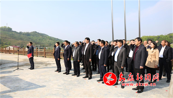 在鱼姐村红色文化旅游广场,全体人员聆听了“恒口暴动始末”“一军月夜借粮”、恒口籍烈士章健等红色历史故事。 示范区(试验区)党工委副书记、管委会主任吴大林代表党工委、管委会向革命烈士敬献花篮,缅怀革命英烈的丰功伟绩。全体人员向烈士默哀鞠躬,深切表达对革命先烈的哀思与敬意,随后,现场全体党员一起高举右拳重温入党誓词,宣誓声庄严而坚定,回荡在鱼姐村山间。