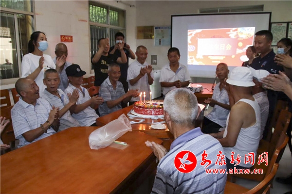 活动现场,他们为老人们送去牛奶、矿泉水、牙膏等生活用品,宣讲防疫小知识,并为11位老人集体庆生,为他们精心准备了生日蛋糕和礼品。老人们围桌而坐,一起唱生日歌,现场其乐融融。