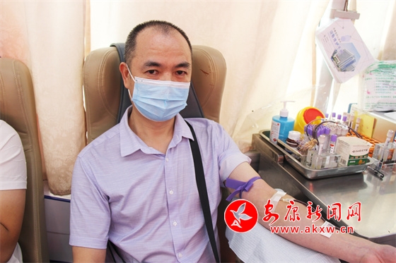 全国无偿献血奉献奖铜奖获得者、驻市发改委纪检监察组组长陈金岚带头参加了无偿献血。