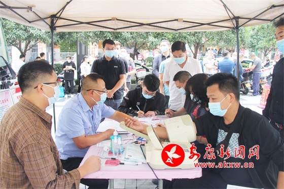 上午9点,大家陆续来到献血车前,在市中心血站工作人员的引导下,全程佩戴口罩,排队有序地进行扫码、填表、体检,认真遵守疫情防控期间的献血规定。