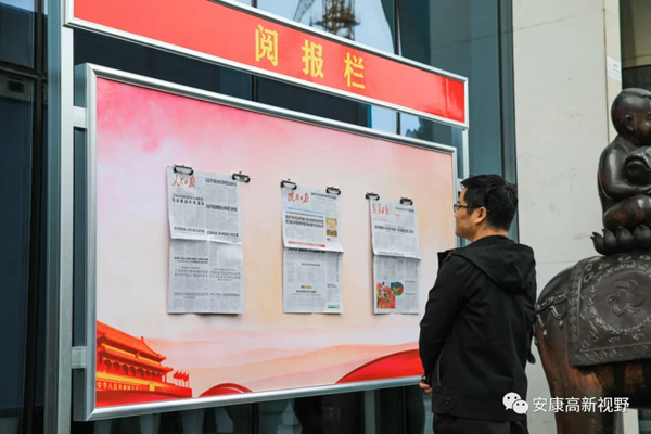 日前,在安康高新区的市民广场、政务中心、公园绿地、大众餐厅、居民社区等人口密集区域,承担着“党报指引方向,阅读增添力量”宣传教育功能的一个个“阅报栏”,让广大市民在享受物质生活的同时更具精神追求,成为创建全国文明城市中一道道亮丽的风景。