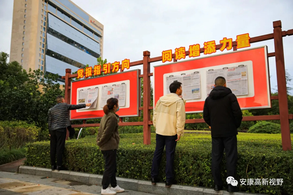安康高新区在布设“阅报栏”的基础上,明确了创文办为管理部门,初步制定了日常管理规范,切实做到《人民日报》《经济日报》《陕西日报》《安康日报》等党报党刊在第一时间换新、破损在第一时间更换,确保把党的声音在第一时间传达到千家万户,把党的温暖及时送到每个角落,进而汇聚起加快建设西北生态经济强市的磅薄力量。