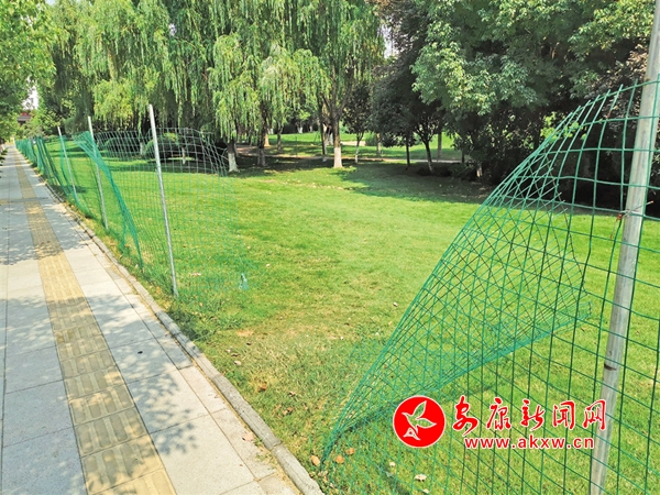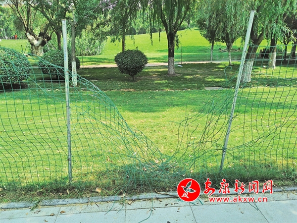 清明节期间,安康高新区运动公园内5处围网被游人破坏。(王琳 摄)