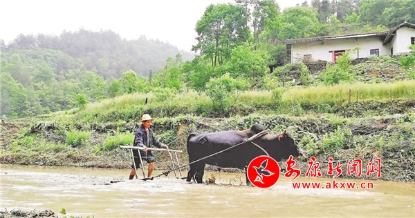 听说要请他给我们讲恒口贡米的故事,他煞有介事地愣了愣,说带我们去田间看看,再讲。过了春分,耕种的土地上,我们感受到的是“农家少闲月,五月人倍忙”的景象!在这里,没有轰隆隆的机器声,只用耕牛犁田,育苗平整,农忙的身影在正暖的春阳与如织的细雨中穿梭。