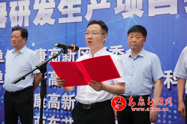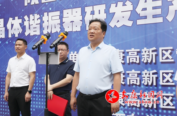 本网讯(记者 肖兵 通讯员 罗楠) 6月1日,安康高新区举行陕西东芯恒科电子有限公司晶体谐振器研发生产项目投产活动。市委常委、安康高新区党工委书记罗武侠出席并宣布投产,市政协副主席、安康高新区管委会主任柯玉富主持活动。
