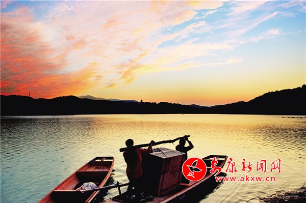 景随人动,瀛湖最美的季节还不在春天。深秋时节,电站大坝下闸蓄水,水位上升,湖面开阔,山啊、树啊宛立在水中,道不出的万种风情。水色如烟,光影朦胧,岛屿罗列,山水相依相亲,如梦似幻。此时大自然早已少了春的细赋描绘,已是浓墨重泼的巨幅写意,山上树叶五彩斑斓,深红、橙红、橙黄、明黄、碧绿、墨绿,层层叠叠、深浅不一,把大山装扮得分外妖娆,哪里还有“枯藤老树昏鸦”的凄凉景象?